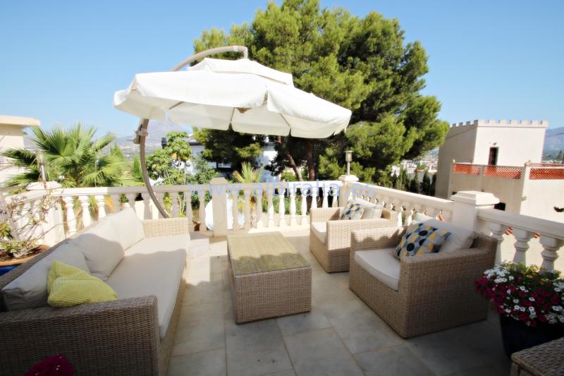 Beautiful villa for rent in Albir. This villa offers spacious garden with fruit trees, private swimming pool with sun beds, BBQ area and few terraces with panoramic views. There are two independent floors: