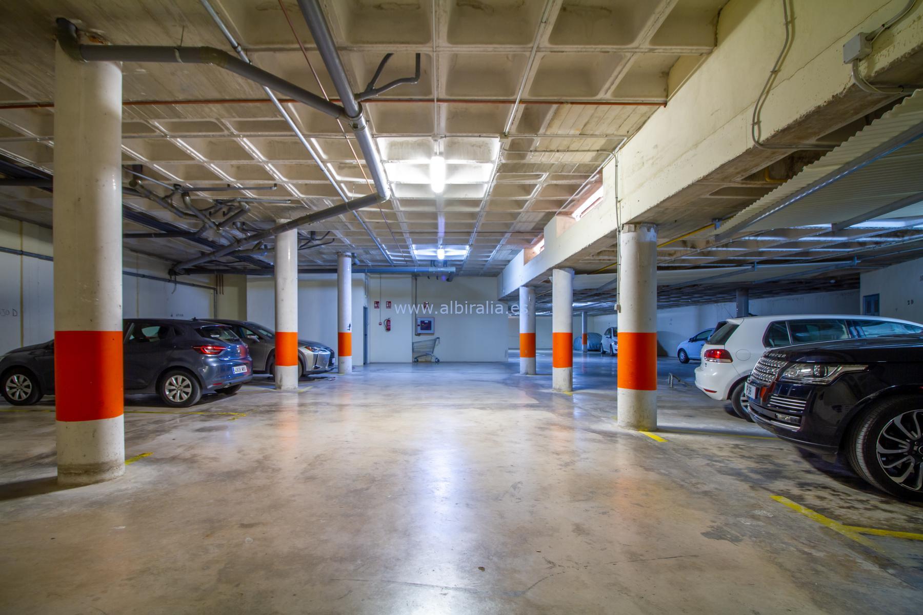 Within the communal garage facility, the apartment enjoys a private, generously sized parking space spanning 17 square meters, as well as a storage room of the same size.