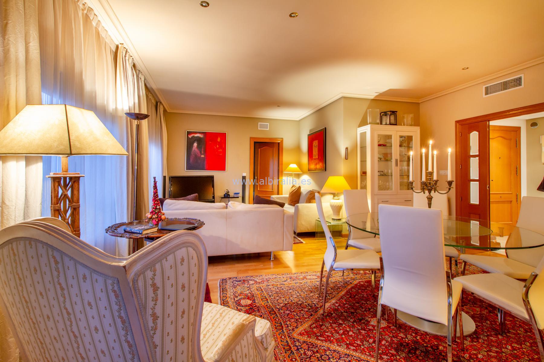 Impeccable maintenance characterizes this apartment, which boasts a range of contemporary features such as marble floors, a thermostatically controlled air conditioning-heat pump with hot/cold settings, and underfloor heating in both bathrooms. Additionally, it includes an oven with a steam cooker and adjustable lighting.