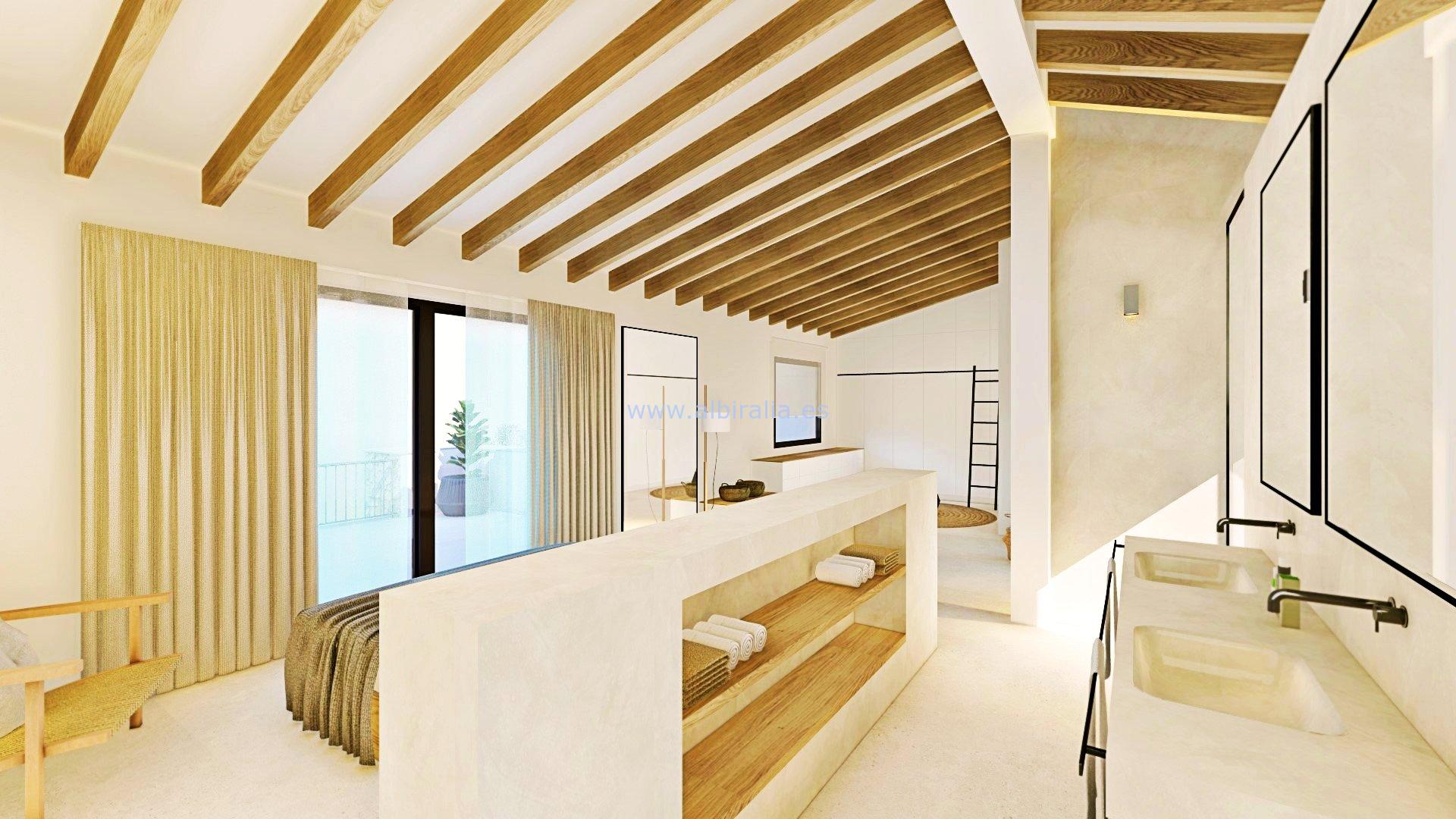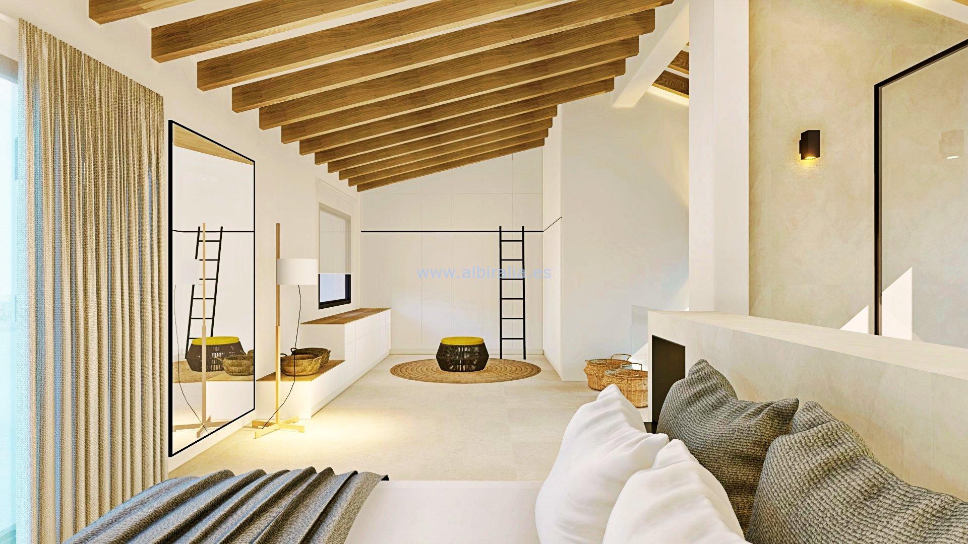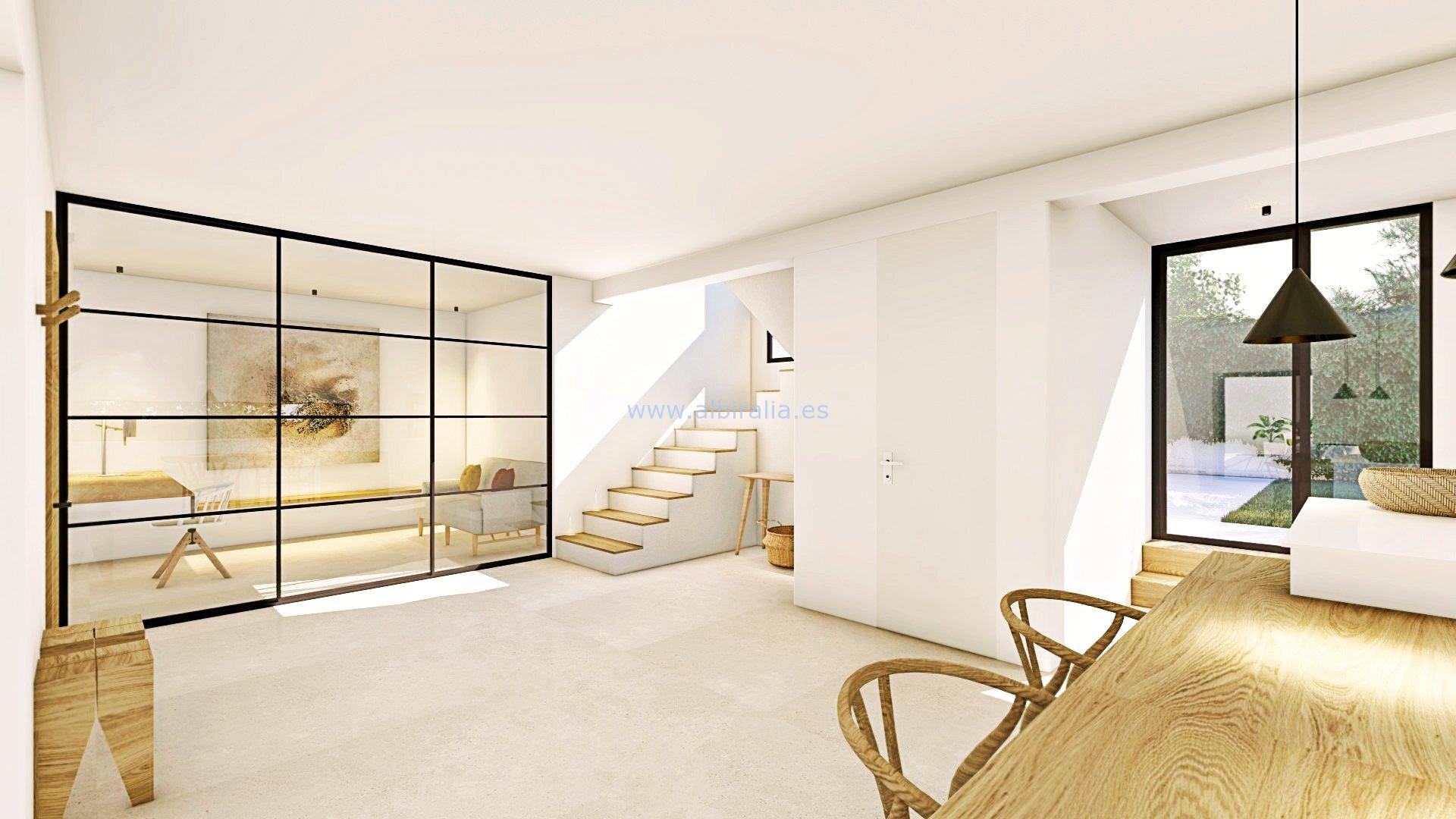Ground floor: open kitchen, home office room that also can be suitabel as a 2nd bedroom, guest toalett, living area with direct access to a private garden. Casita with washing machine and dryer.