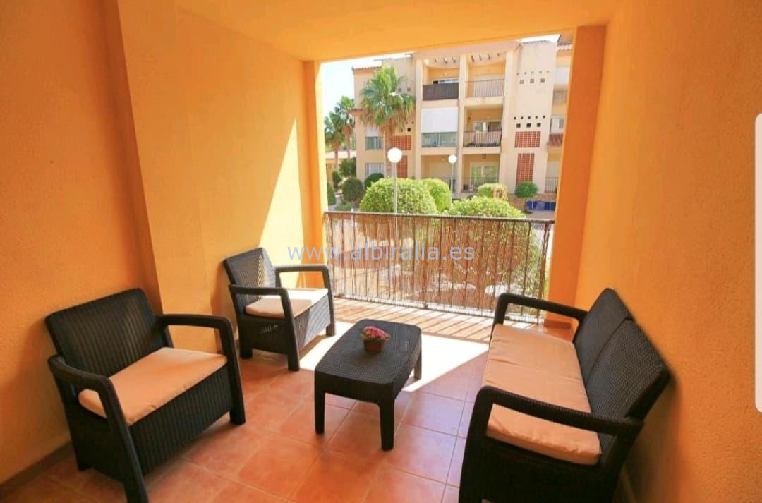 Short term one bedroom apartment in Albir. This apartment is located in Florida block at the center of the town (2 minutes walking distance to Mercadona supermarket). It´s rented full furnished and with full equipped kitchen and washing room. Air condition, terrace and communal garden with swimming pool.